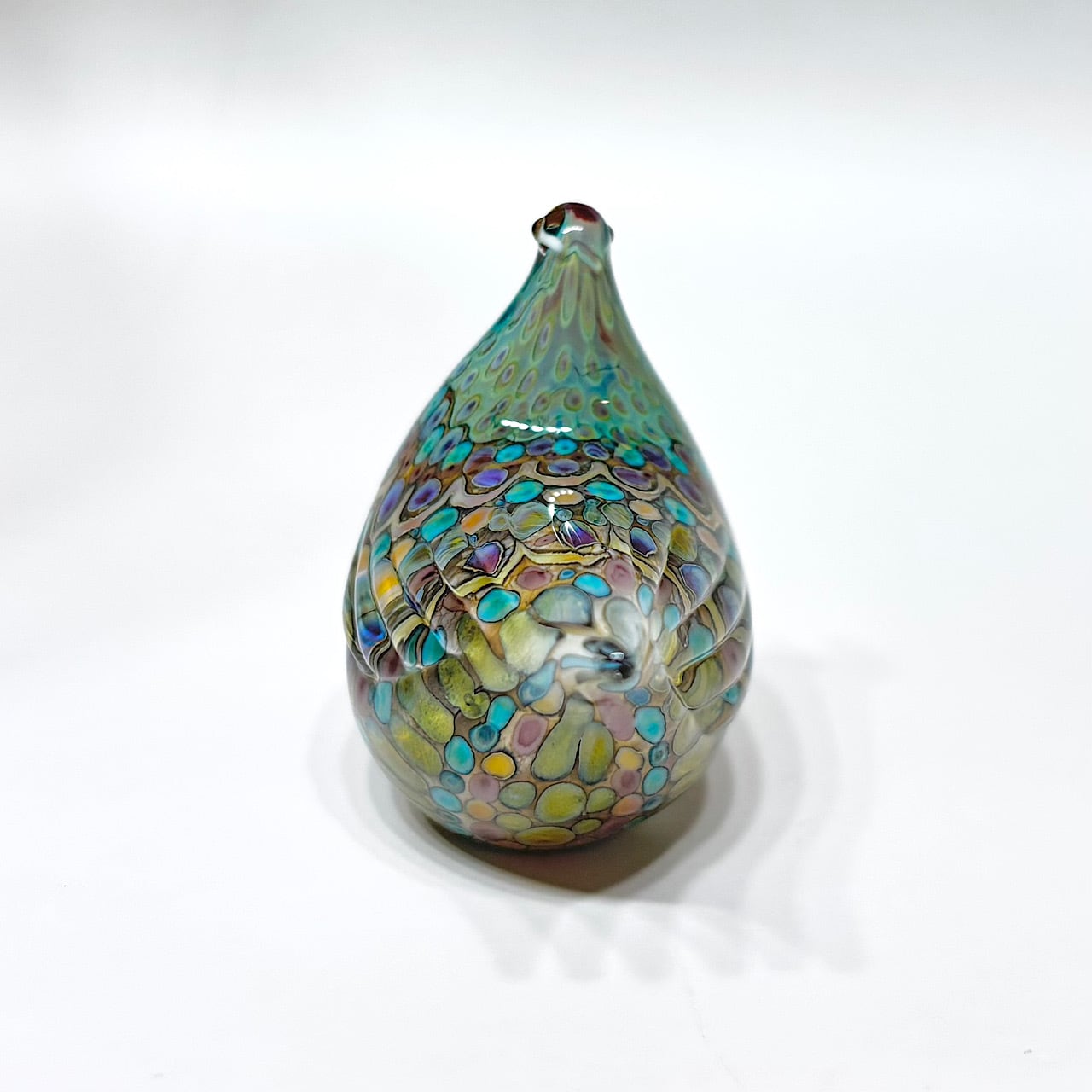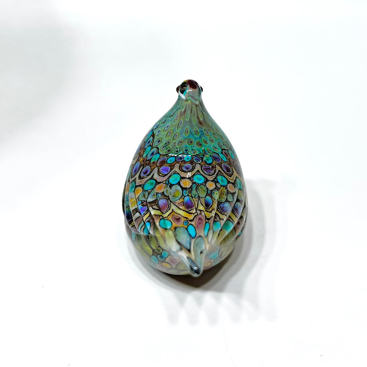 とても小さいですが、細かくさまざまなガラスを溶かして模様をつけています。